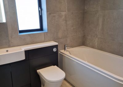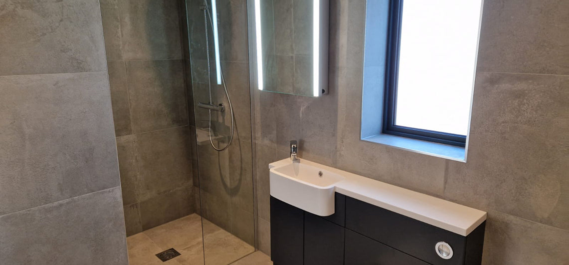 We designed, supplied and fitted this contemporary bathroom in St Hilary, Cornwall. Our clients selected these stunningAl Fresco concrete effect tilesthat are a really interesting take on natural stone with a modern industrial twist. They have a matt porcelain finish and come in a 60 x 60 cm format. The colour choice wasAl Fresco pewter porcelain tilescomplimented byAl Fresco white porcelain tiles.
