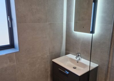 The finished result was a modern industrial look to the bathroom. Needless to say our customers were very pleased with the outcome.