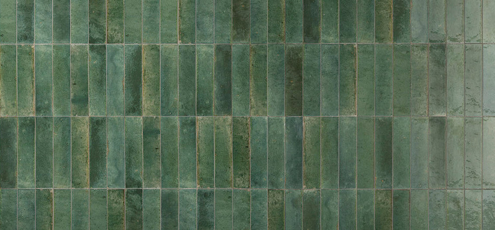 Luminous Lume Green subway brick tiles in premium Italian Glazed porcelain