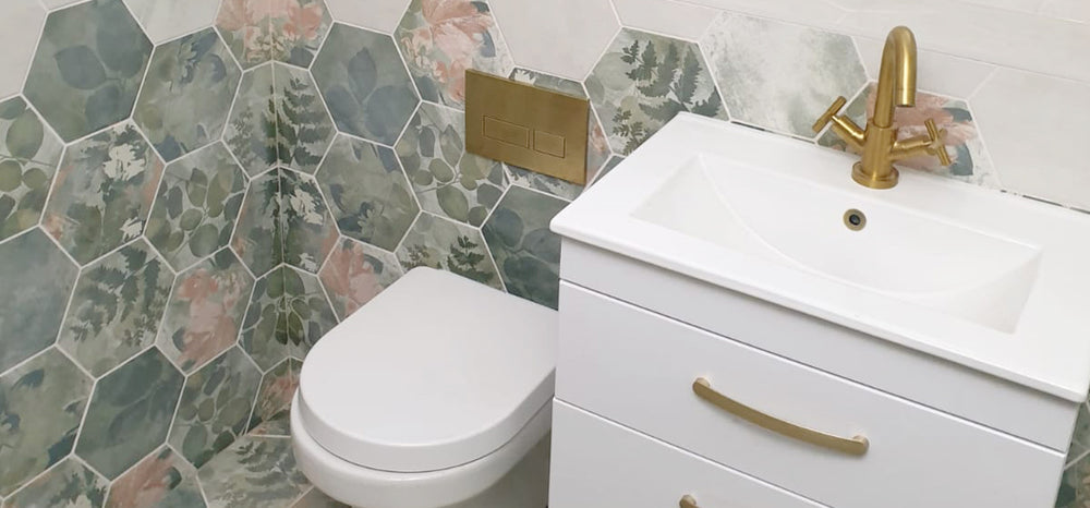 Woodland Glad hexagon tiles by the National Trust for this beautiful bathroom in Kenwyn, Truro